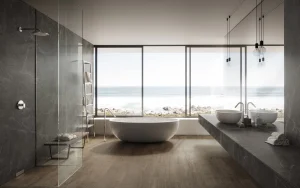 Porcelánová kamenina s mramorovým efektom v intenzívnej, hlbokej a kompaktnej sivej, prekrížená kontrastnými svetlými žilkami, ktoré zvýrazňujú eleganciu povrchu. Grey Stone reaguje na potreby súčasného bývania s podmanivými a funkčnými doskami.